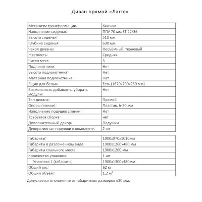 Диван Латте (Аквилон) продается в интернет-магазине mebel-online-novosibirsk.ru по цене 28 547 руб. Есть доставка по Новосибирску и Новосибирской области. Возможность подъема на этаж и сборки уточняйте у менеджера по телефону 8(800)505-27-11.