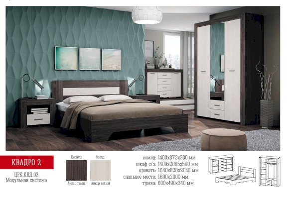 Модульная спальня Квадро-2 (Астрид-Мебель) продается в интернет-магазине mebel-online-novosibirsk.ru по цене 44 860 руб. Есть доставка по Новосибирску и Новосибирской области. Возможность подъема на этаж и сборки уточняйте у менеджера по телефону 8(800)505-27-11.