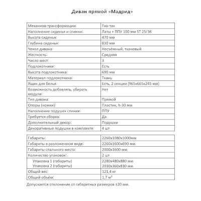 Диван Мадрид (Аквилон) продается в интернет-магазине mebel-online-novosibirsk.ru по цене 66 342 руб. Есть доставка по Новосибирску и Новосибирской области. Возможность подъема на этаж и сборки уточняйте у менеджера по телефону 8(800)505-27-11.